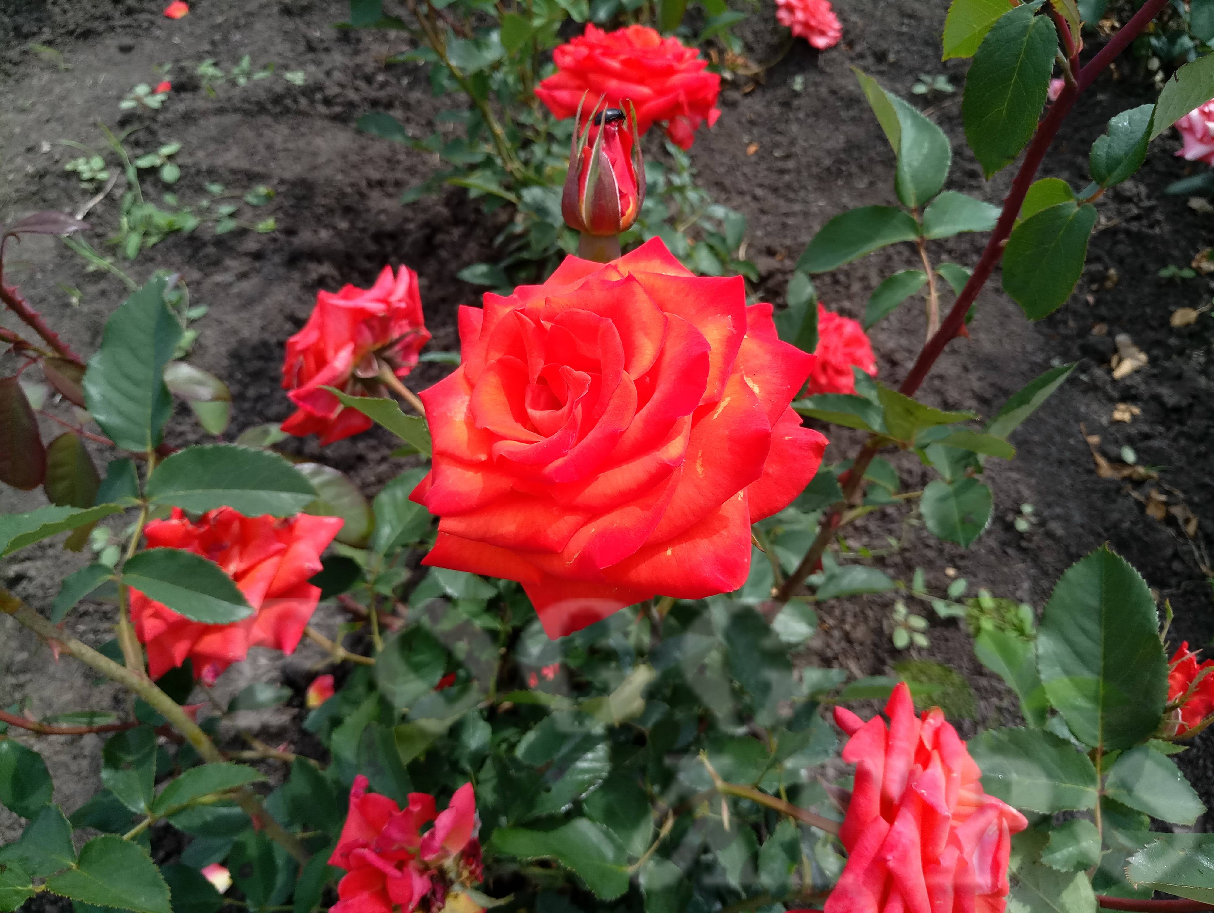 Диаметр: 11-13 см,  высота: 90 см,  аромат: лёгкий, уловимый,сладкий;  цвет: оранжево-малиново-красный;  цветение: повторное